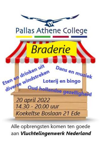 Dinsdag 20 april ben je van 14:30 tot 20:00 welkom op het Pallas. We houden een inzamelingsactie voor Vluchtelingenwerk Nederland. Natuurlijk is iedereen bekend met het lot van de vluchtelingen uit Oekraïne. Maar we denken ook aan de mensen die voor honger en oorlog op de vlucht zijn vanuit vele andere landen. Daarom gaan alle opbrengsten van deze braderie naar Vluchtelingenwerk Nederland.