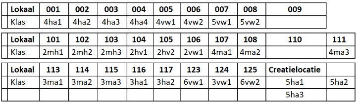 Schema kennismaking mentor en boeken ophalen 2e klas en hoger